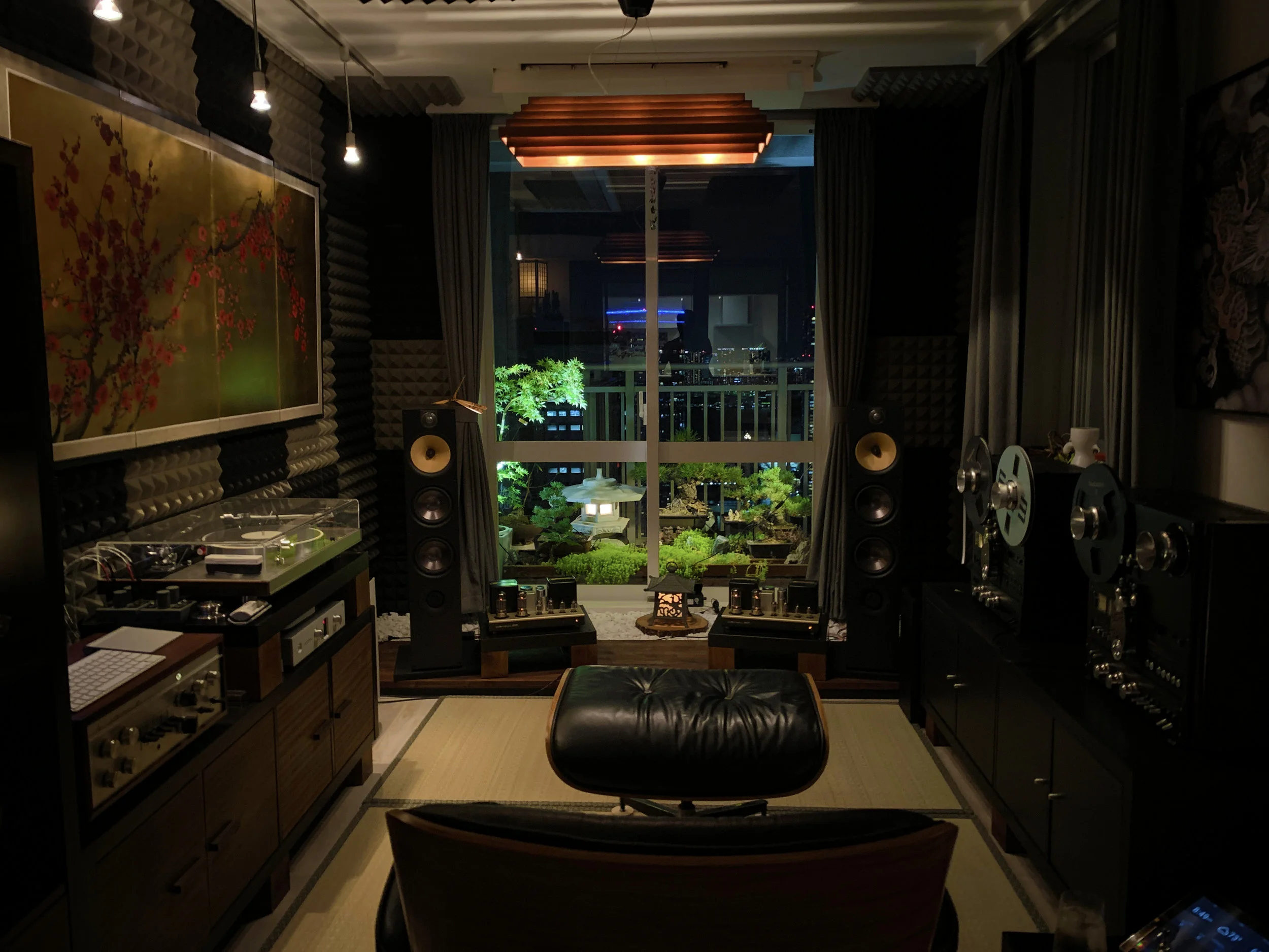The music room is my personal favorite space in my home. It is where I get to relax and unwind. It's also where I test all my audio equipment while listening to my expanding vinyl and master tape collection. I love to collect and restore vintage Japanese high-end audio equipment. Living the 47th floor of a high rise, I need to keep the volume low, so as with most thing in my life, I go with quality over quantity. My only problem is I have more audio equipment than I have room. There could be worse problems!